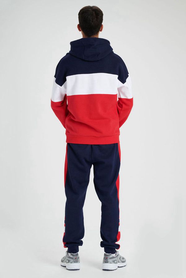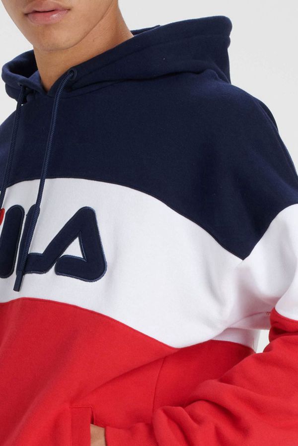 This Vintage Rayton Fleece Hoody boasts a colour block design with adjustable drawstring hood featuring branded tips and eyelets. A stretch ribbed waistband with stretch ribbed cuffs on the sleeves and a kangaroo pouch pocket at the waist. Complete with our FILA signature linear logo for a bold statement.