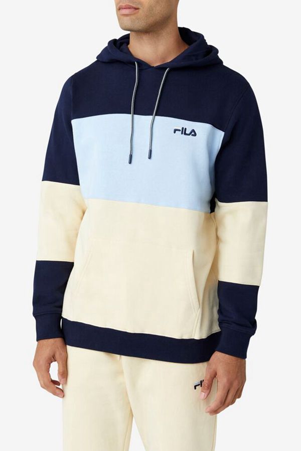 This premium hoodie features a warm and soft brushed back fleece construction in a tri-color block.