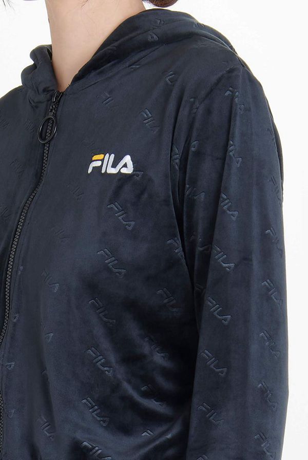 The comfortable Cipriana all over embossed Zip Through Hoodie featuring an all-over FILA logo for branding, combine this with Estefania leggings for the perfect tracksuit.