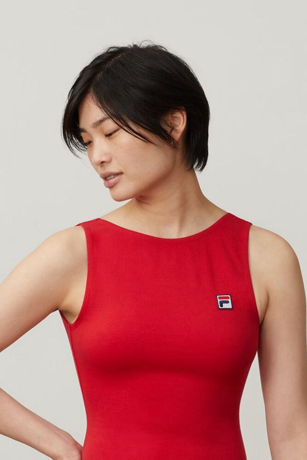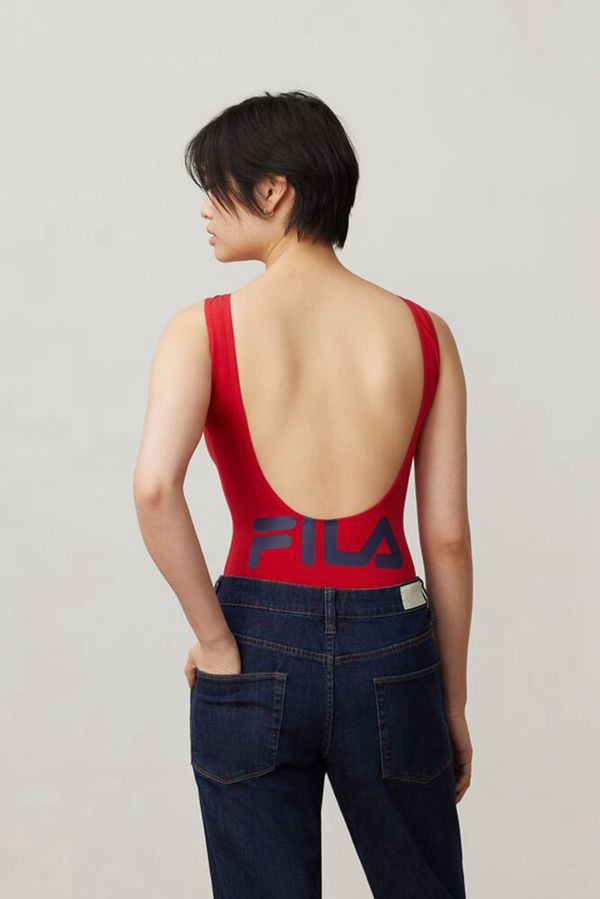 This sporty bodysuit includes a classic FILA F-Box logo patch on the left chest and uncommonly placed logo on the center back.