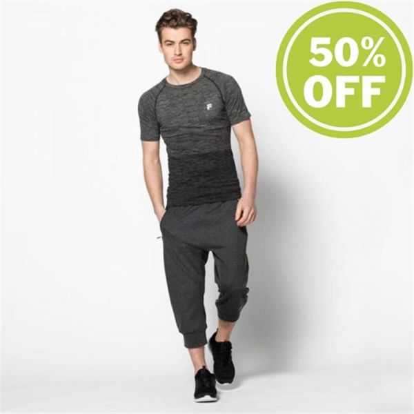 Camisas Fila Homem Pretas/Cinzentas - Fila Seamless Manga Curta Sleeve Training Shirt Portugal Onlin