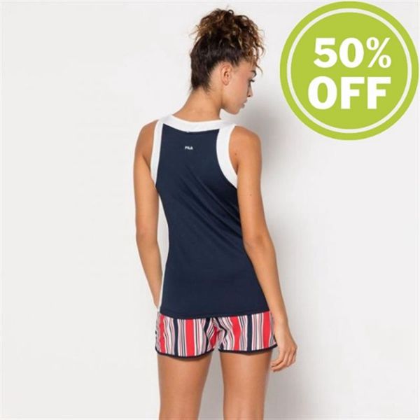 Trendy tennis shirt in dark blue with FILA logo on the neck and on the side. gender: women