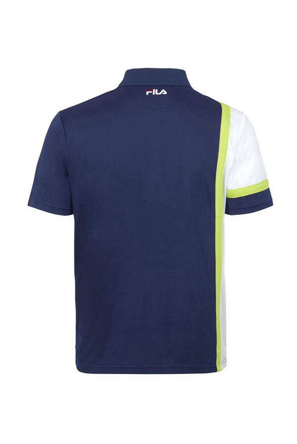 Flashes of retro brilliance combine with a modern look for this PLR Tennis Polo that features asymmetrical color blocking and vibrant acid lime stripe detailing.