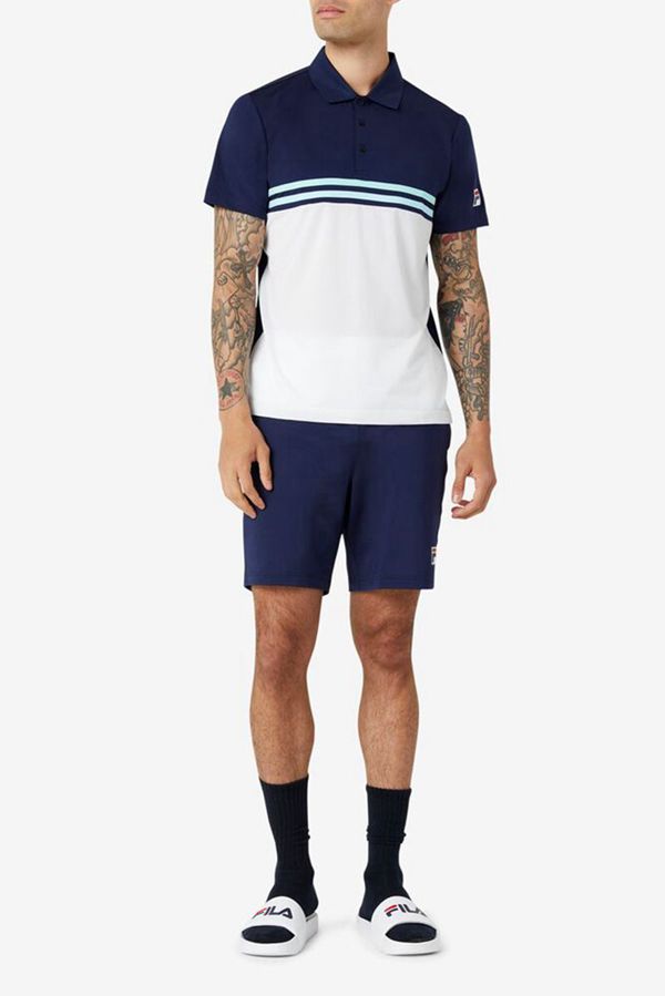 Camisas Polo Fila Homem Branco/Azul Marinho/Vermelhas - Fila Manga Curta Sleeve Tennis With Double S