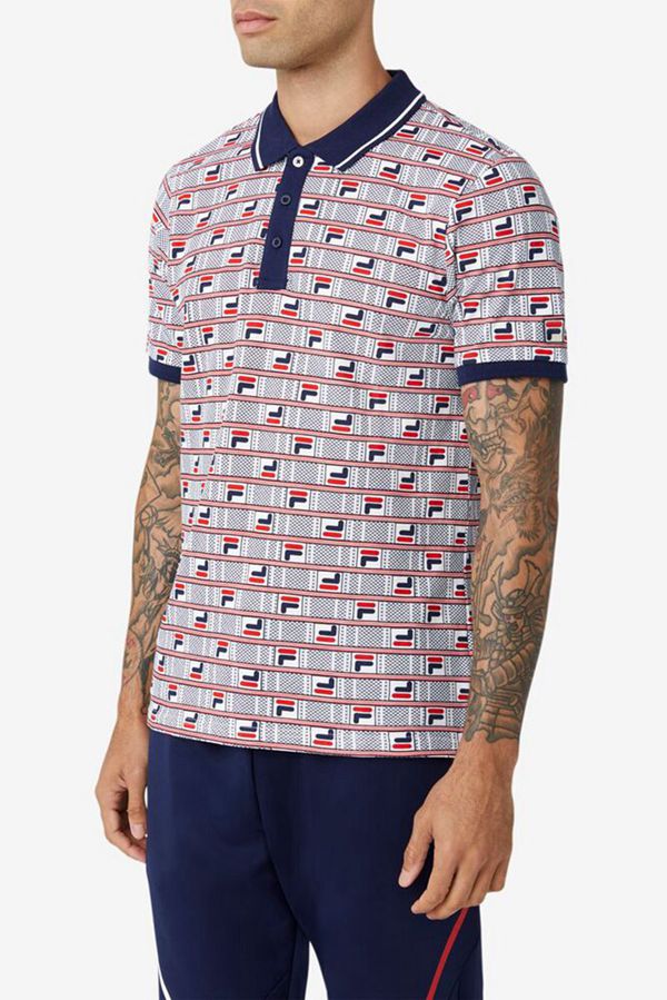 Camisas Polo Fila Homem Azul Marinho/Branco/Vermelhas - Fila Gianni Loja Online Portugal,STXL-63820