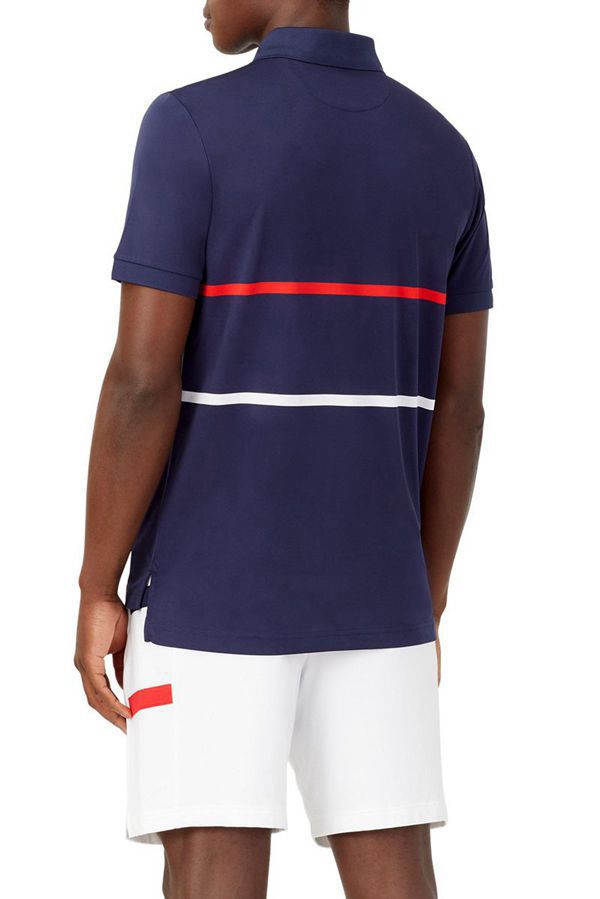Designed to move with you on the court. The Men's tennis HERITAGE Stripe Polo is constructed from a soft stretch fabric with anti-odor. Featuring rib collar and cuff complete with our FILA F-Box logo on chest.