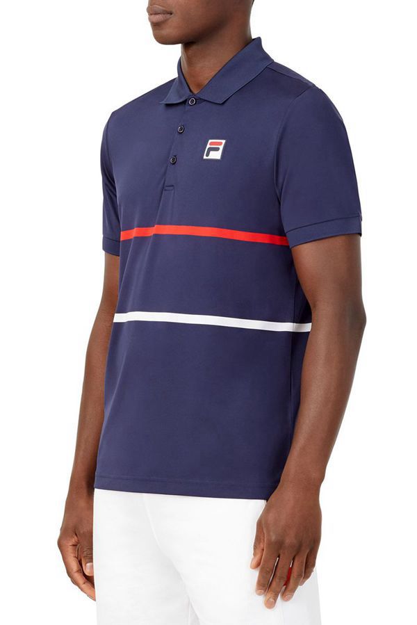 Designed to move with you on the court. The Men's tennis HERITAGE Stripe Polo is constructed from a soft stretch fabric with anti-odor. Featuring rib collar and cuff complete with our FILA F-Box logo on chest.