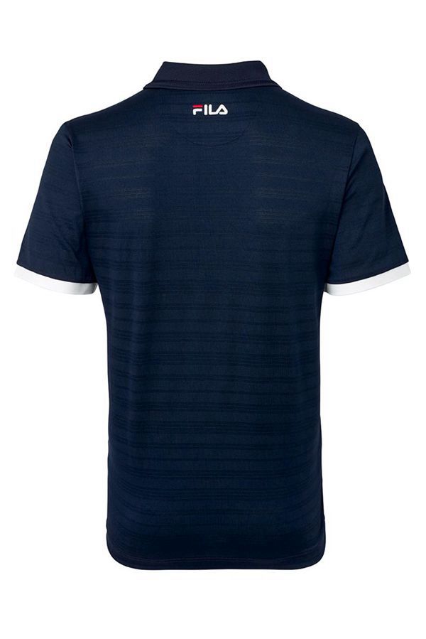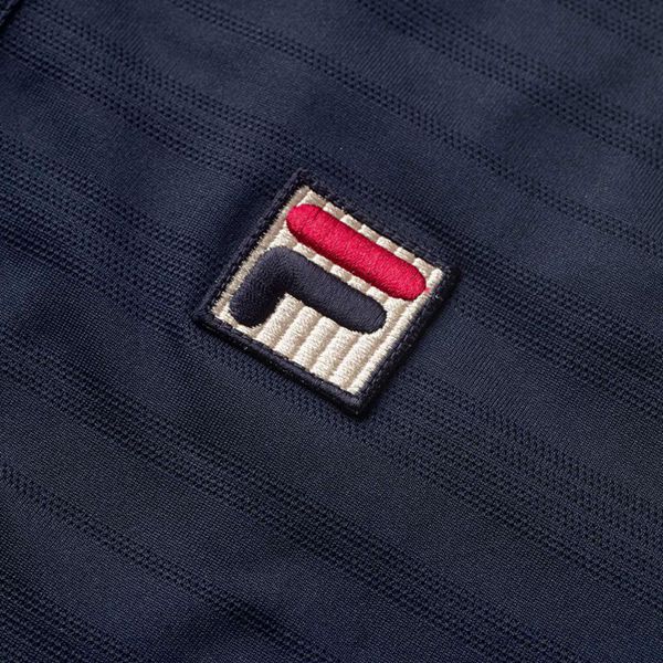 Updating a classic navy polo shirt with a modern twist, this FILA design features a textured stripe pique polyester build with our iconic F-Box branding.