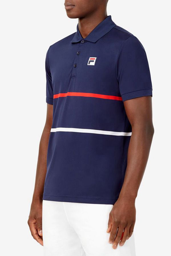 Camisas Polo Fila Homem Azul Marinho/Vermelhas/Branco - Fila Manga Curta Sleeve Tennis With Double S