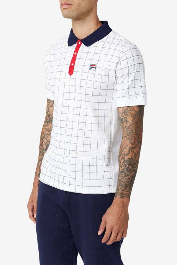Camisas Polo Fila Homem Branco/Azuis/Vermelhas - Fila Heritage Tennis Portugal Online,NBVZ-16250