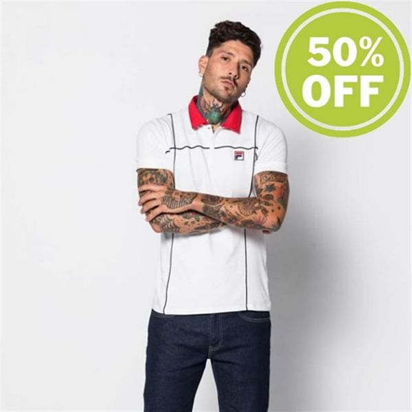Camisas Polo Fila Homem Branco/Azuis/Vermelhas - Fila Heritage Tennis Portugal Online,NBVZ-16250
