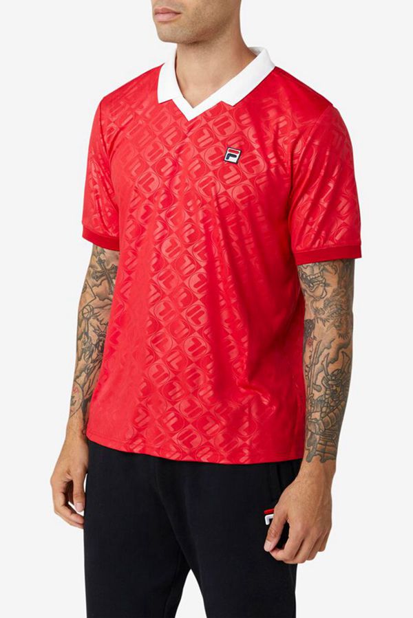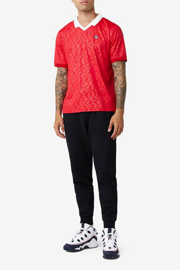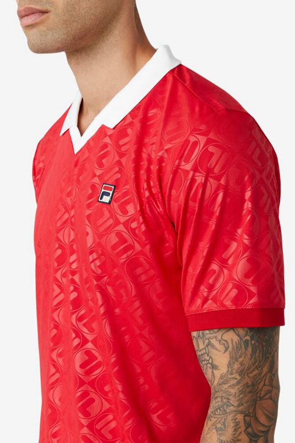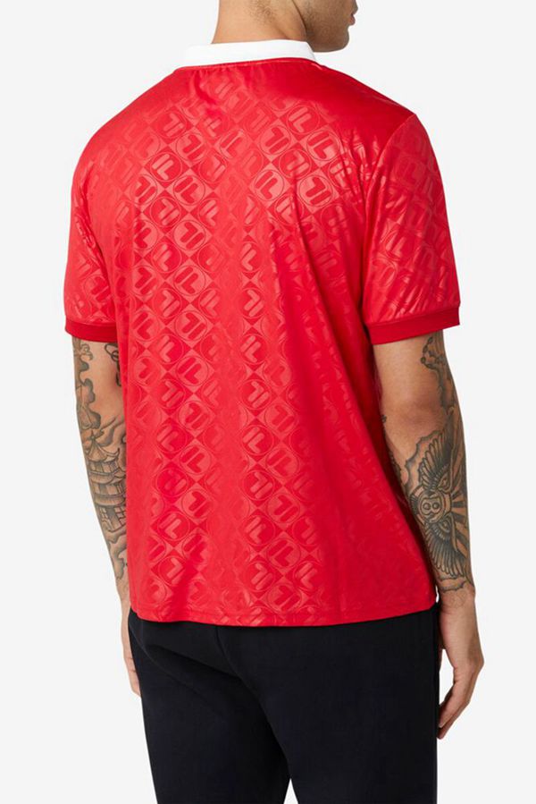 The ‘90s soccer style is strong with this collared polo top, featuring a retro-inspired polyester upper with FILA logos embossed throughout.