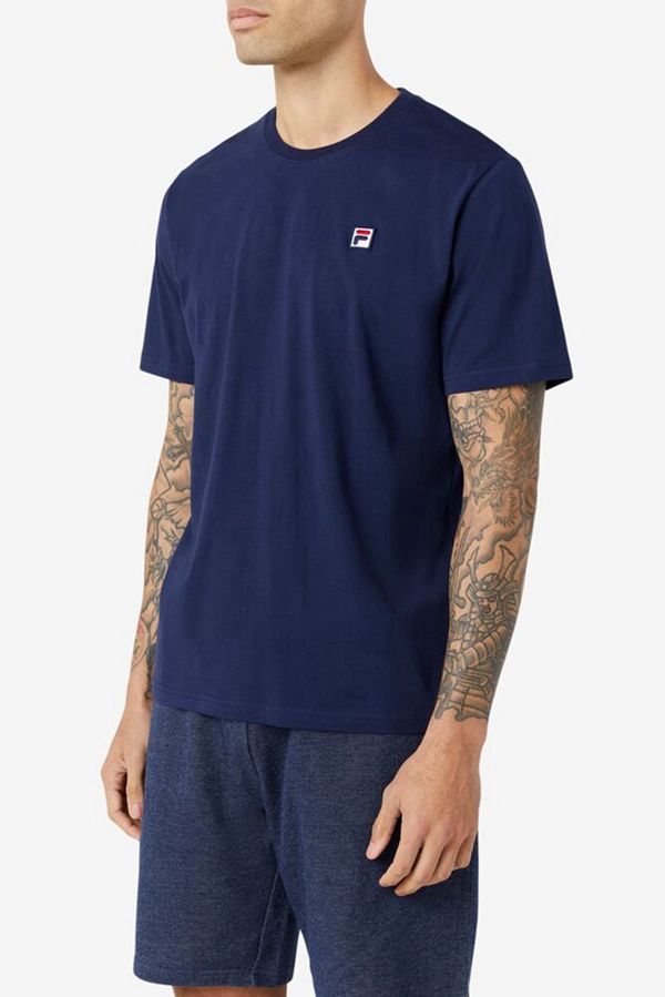 Camisetas Fila Homem Azul Marinho - Fila Double Stripe Sleeve Tennis En Portugal,JIVX-64790