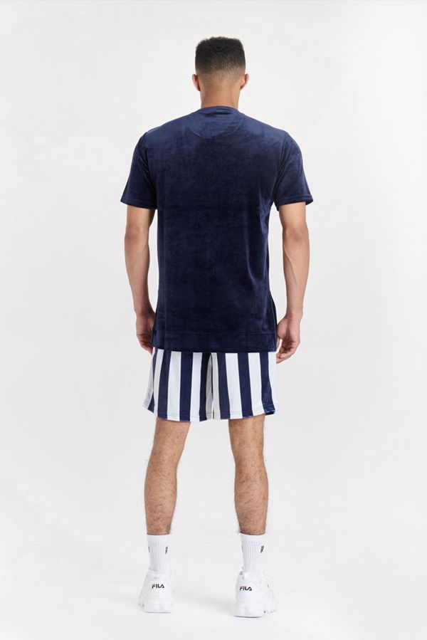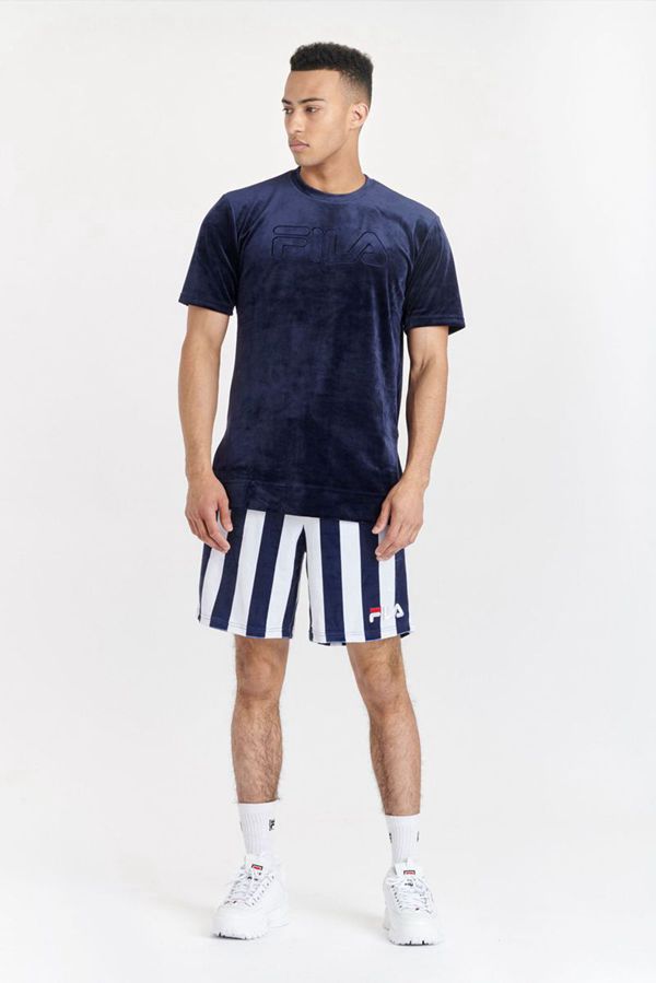 Luxurious style is what you'll enjoy with this velour crew tee, featuring FILA logo outline embroidered across the chest.