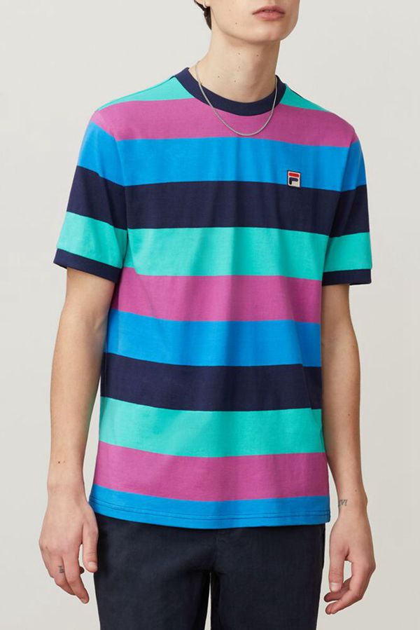 Go extra colorful this spring with this premium tee featuring a five-color striped design.