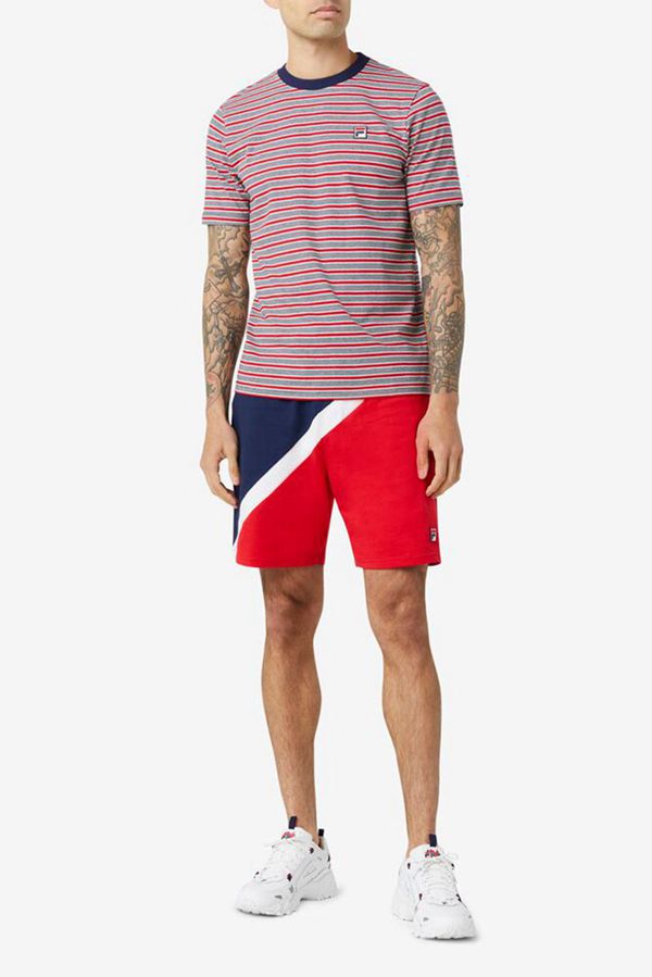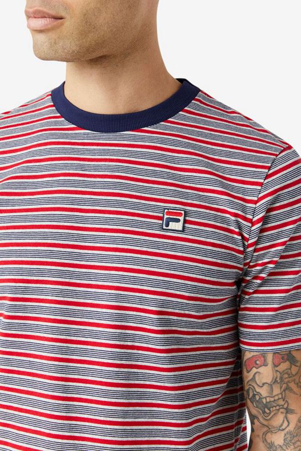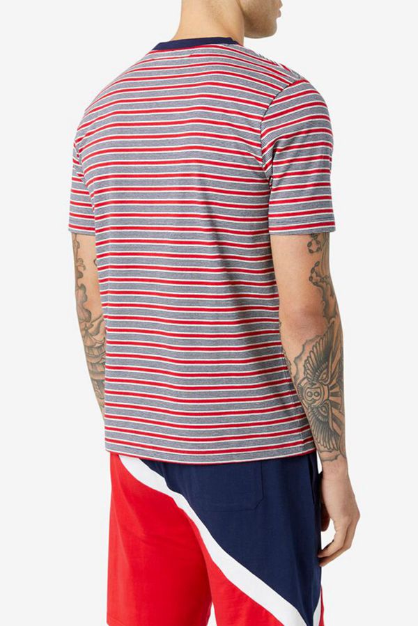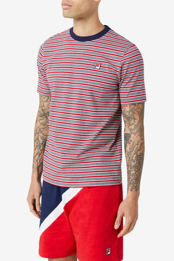 Camisetas Fila Homem Branco/Vermelhas/Azul Marinho - Fila Bennet Portugal Online,FYMC-09514
