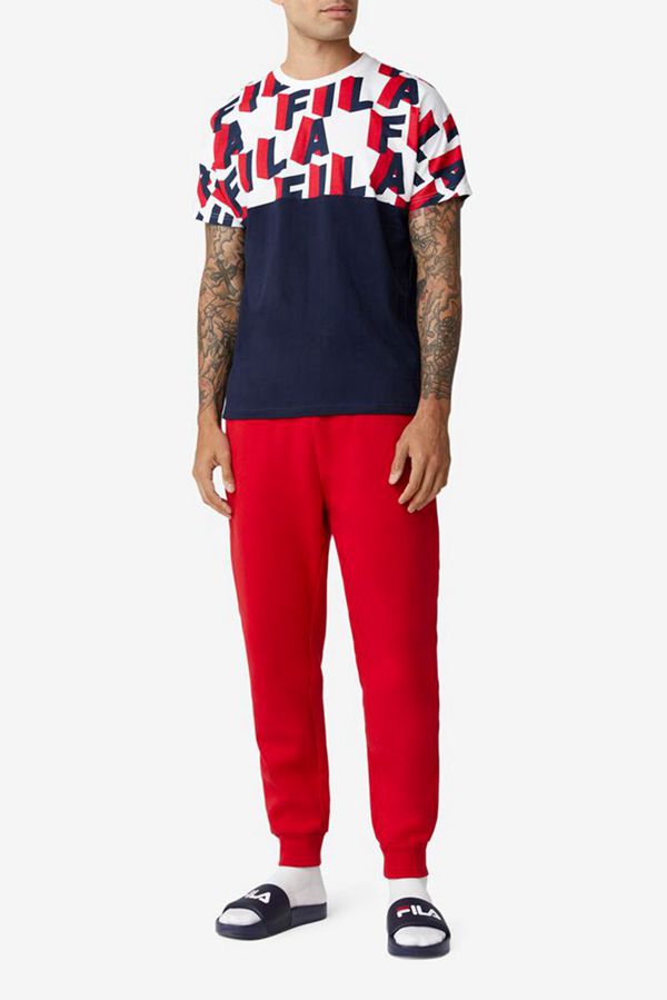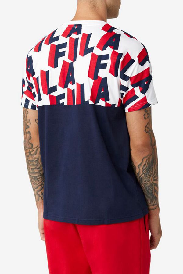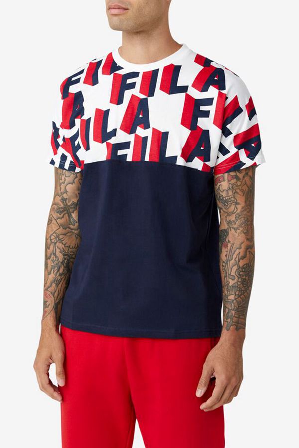 Stand out from the crowd in this bold t-shirt featuring a high-contrast two-color block with repeating FILA graphics on the upper half.
