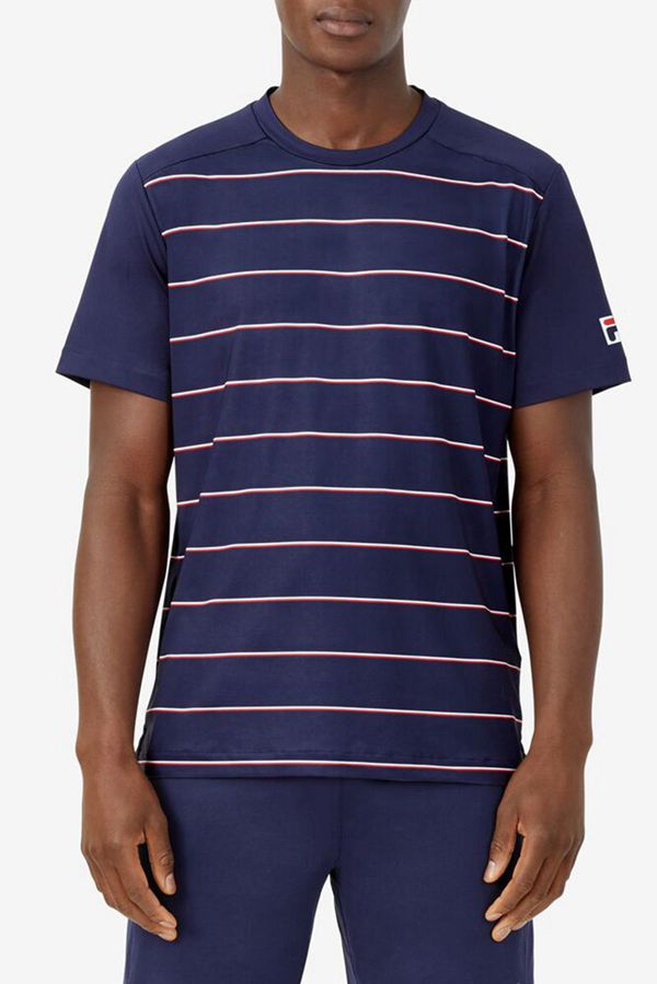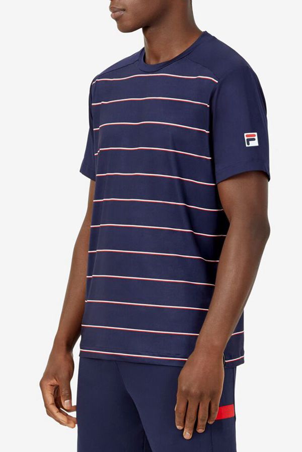 Home ::  Homem ::  Tênis ::  Camisetas ::  Camisetas Fila Homem Azul Marinho/Listrada - Fila Striped Sleeve Tennis En Portugal,QLUZ-76205