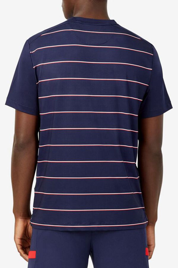 Camisetas Fila Homem Azul Marinho/Listrada - Fila Striped Sleeve Tennis En Portugal,QLUZ-76205