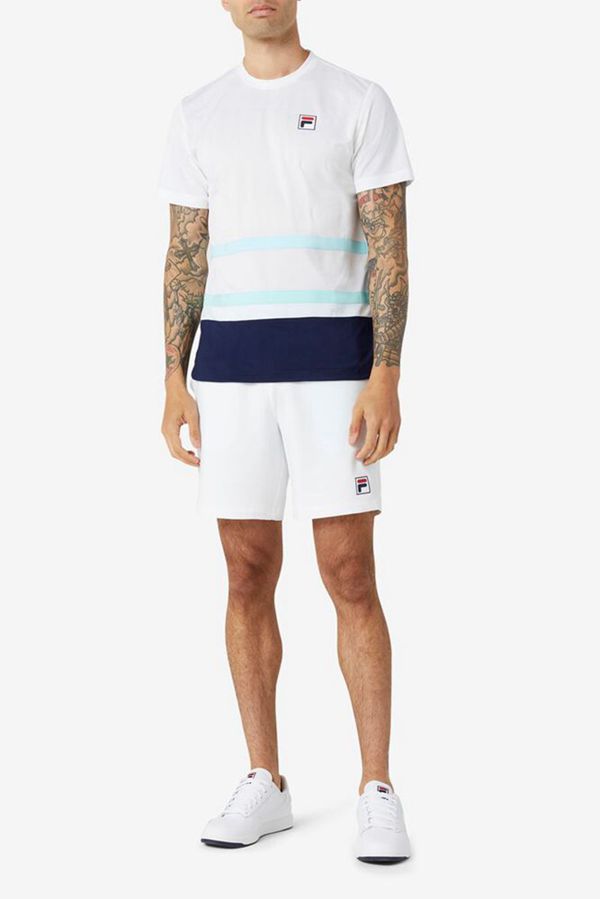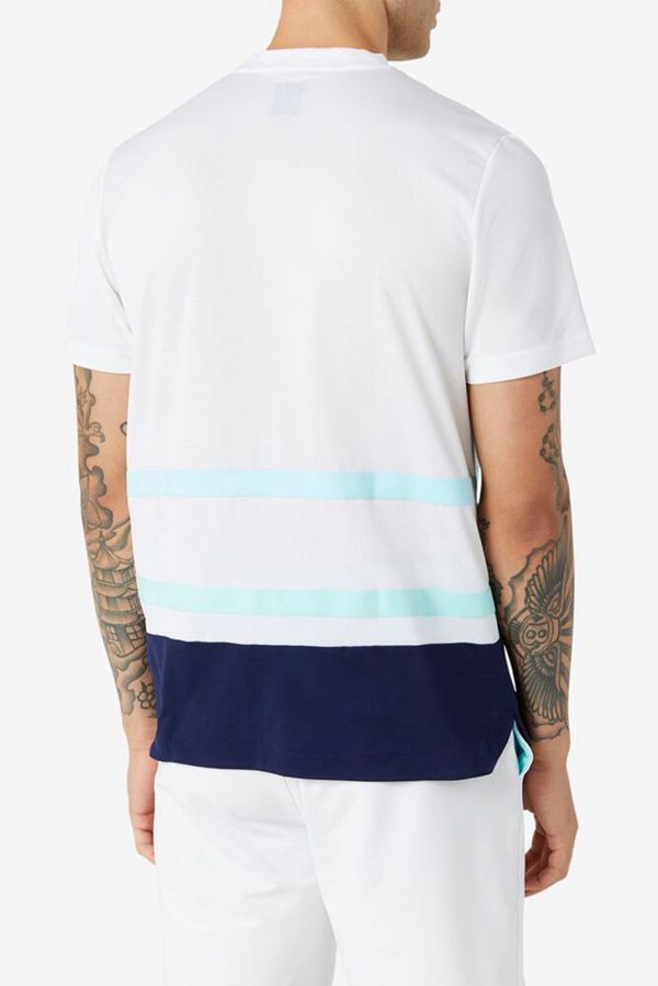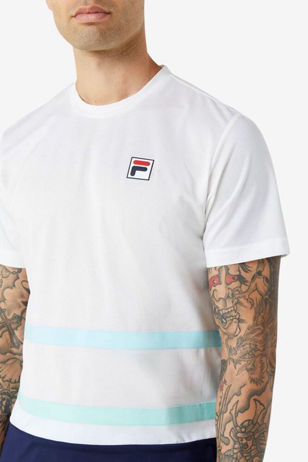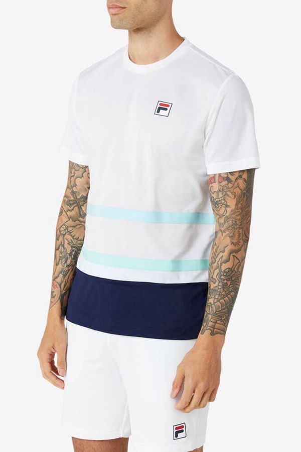 Camisetas Fila Homem Branco/Listrada - Fila Striped Sleeve Tennis Loja Online Portugal,MKRD-32870
