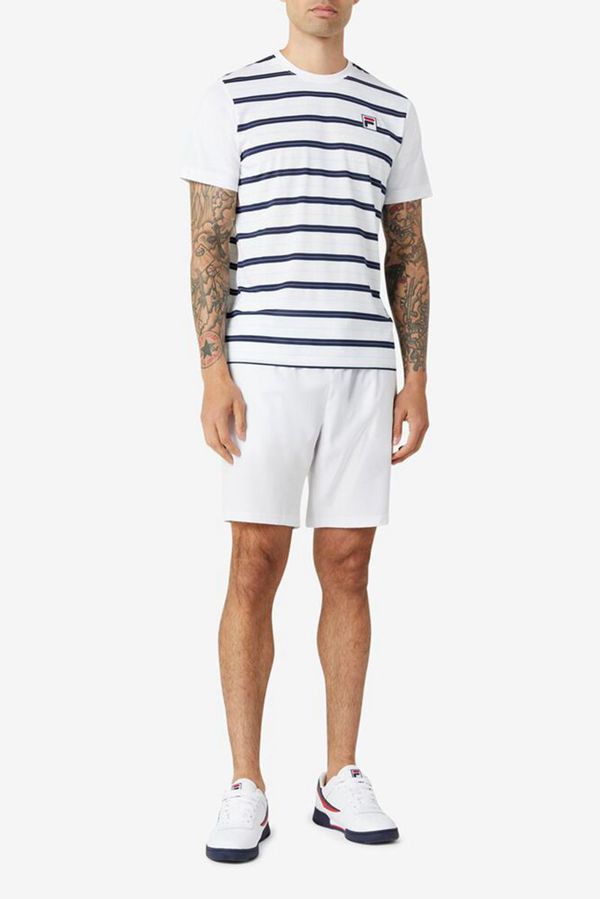 Camisetas Fila Homem Branco/Azul Marinho - Fila Legends Yarn Dyed Crew En Portugal,GIWY-26148