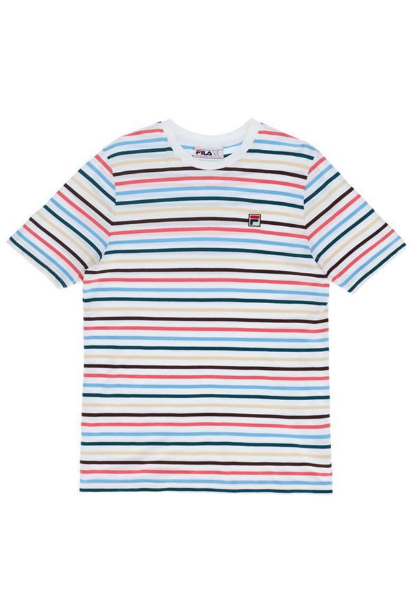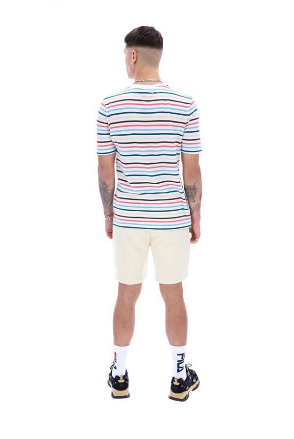 The Vara Engineered Stripe T-Shirt boasts a pinstripe aesthetic featuring a rib neckline constructed from a soft cotton, elastane fabric blend.