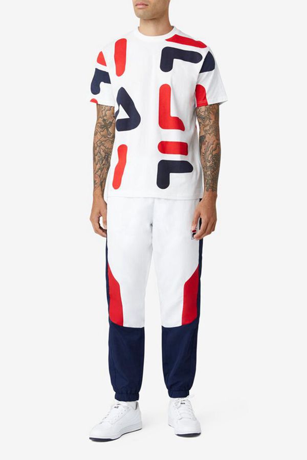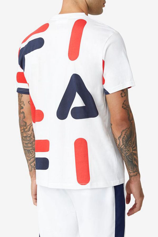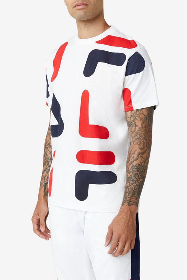 Camisetas Fila Homem Branco/Vermelhas/Azul Marinho - Fila Bennet Portugal Online,FYMC-09514