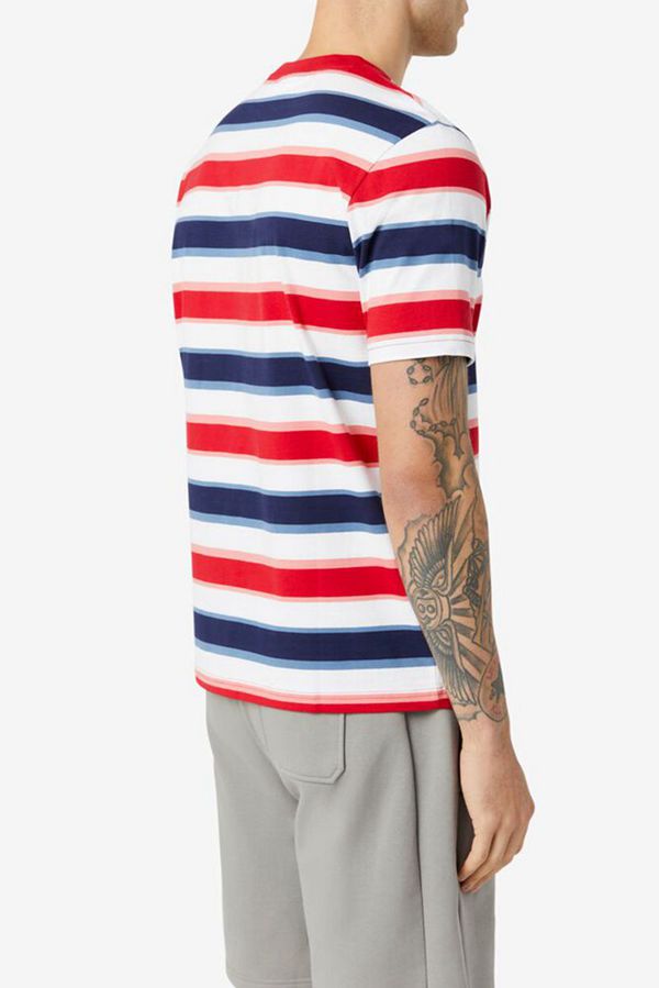 Camisetas Fila Homem Azuis/Branco - Fila Pietersite Striped Portugal Online,JLDQ-04891