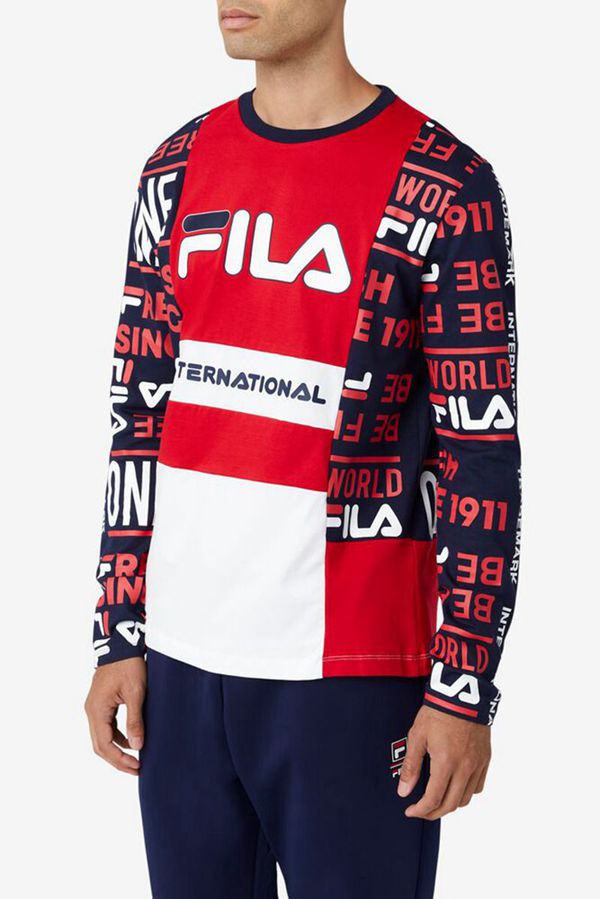 Distinct color blocking and brash overbranding combine on this standout long sleeve tee, featuring a premium heavyweight cotton construction.