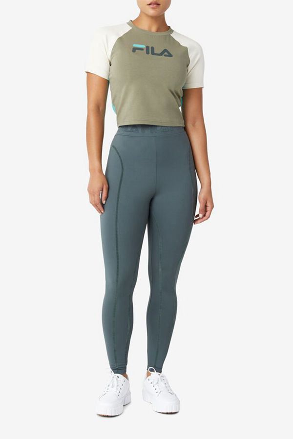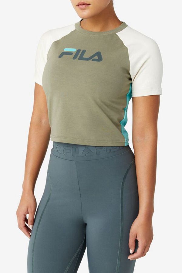 Women's athletic crop top featuring a comfortable cotton and spandex mix for the perfect stretch. Fit for athletic endeavors or movie nights. FILA.