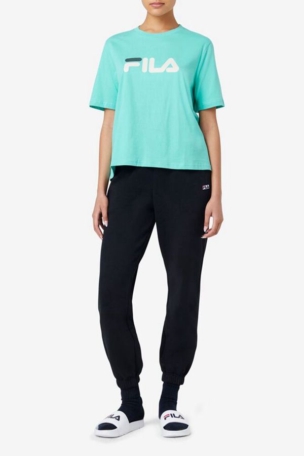Camisetas Fila Mulher Pretas - Fila Stacked Logo S/S Portugal Online,UEJF-75698