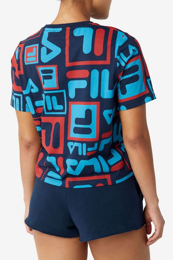 Camisetas Fila Mulher Azul Marinho/Azuis/Vermelhas - Fila Josephine Crew Neck Sleeve Portugal Lojas,