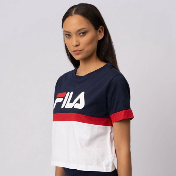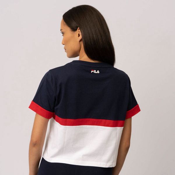 Camisetas Fila Mulher Azul Marinho/Vermelhas/Branco - Fila Chiara Crop Box Portugal Online,SDGQ-1094