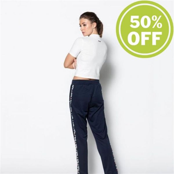 Street-style turtle tee with big FILA logo on the chest. Women