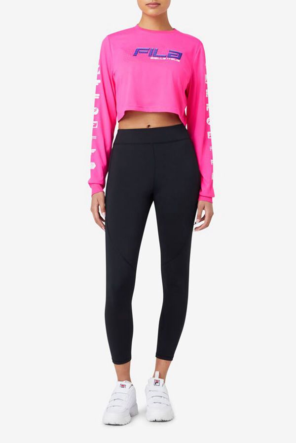 Camisetas Fila Mulher Pretas - Fila Linear Logo L/S En Portugal,MJAY-65907