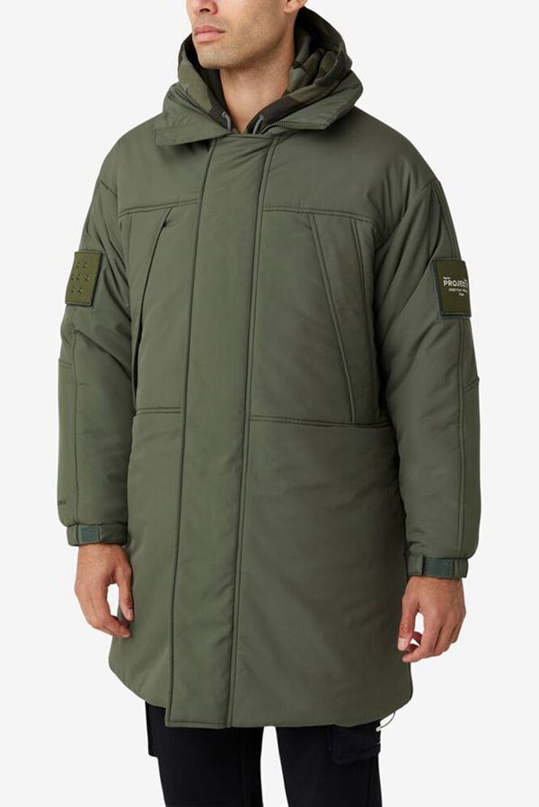 Casacos Fila Homem Caqui - Fila Project 7 Long Puffer Loja Online Portugal,TVRE-94750
