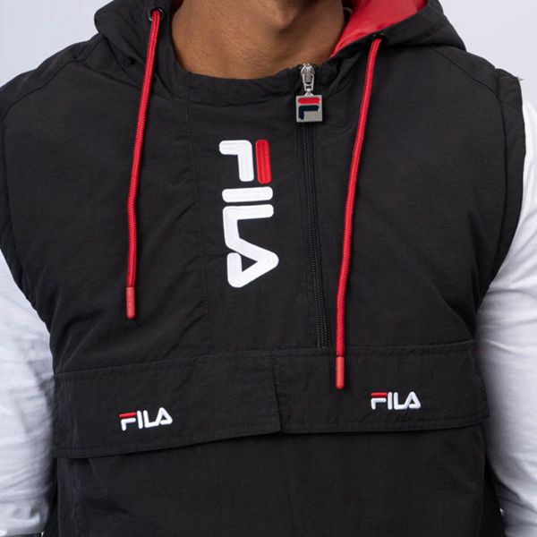 Coletes Fila Homem Pretas/Vermelhas/Branco - Fila Marco Utility Hooded Outlet Portugal,BDJC-18479