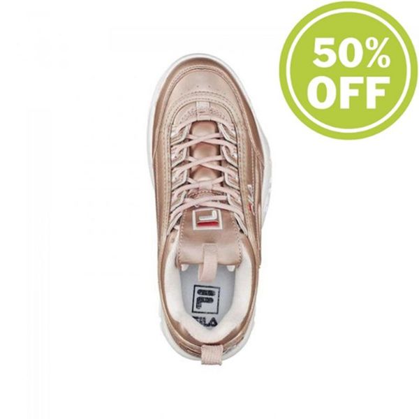 90's are back. FILA Disruptor Low in metallic rose gold. The shoe has got a narrow fit. Our recommendation: order one size larger as usual. gender: women