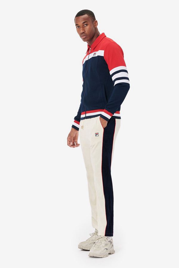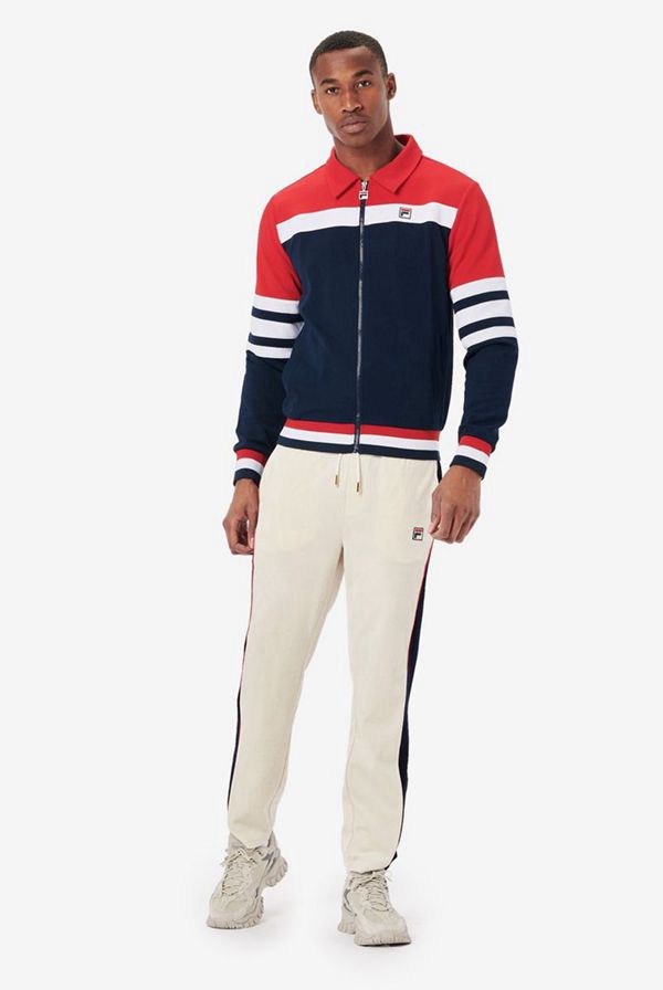 The vintage COURTO 2 Track Top features a colour block design, panel constructing with a striking white cut and sew chest stripe. Complete with fold down collar for that sharp, elegant look.