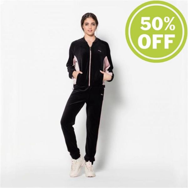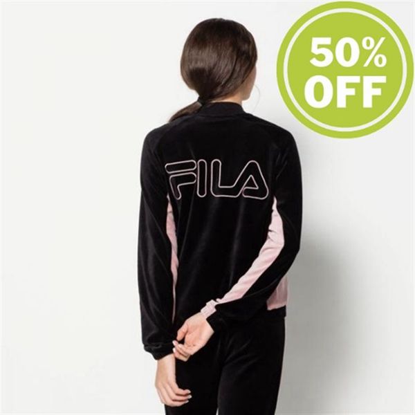 Casual joggingjacket in black with a big FILA logo on the back and pink stripes on the sides. black