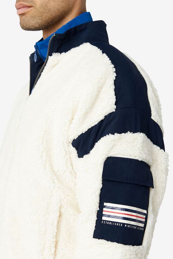 Men’s Sherpa Jacket with ribbed cuffs and waist to maintain maximum warmth.