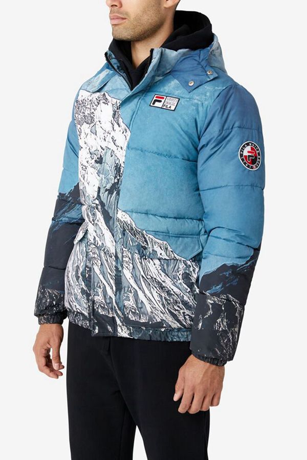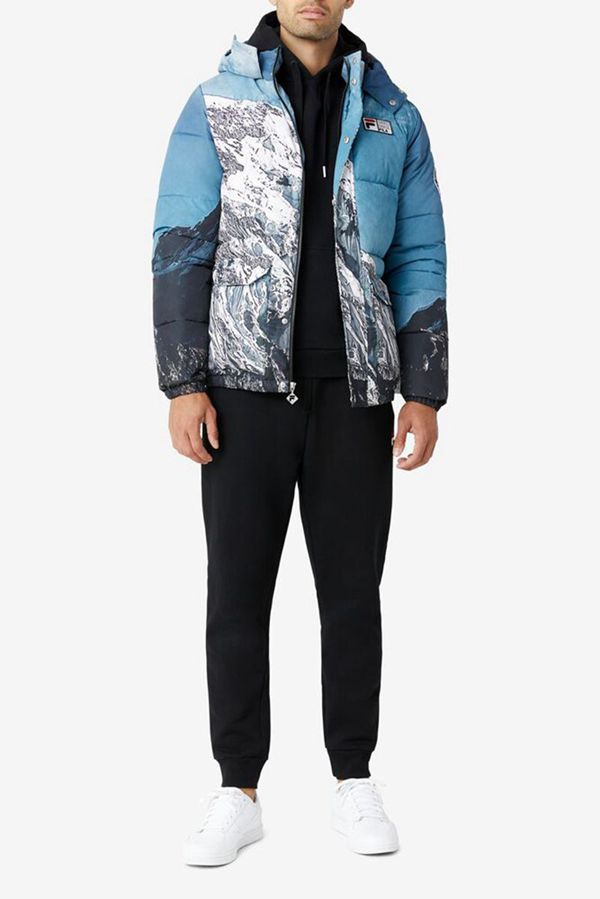 Premium hooded puffer coat with front pockets for essential items.