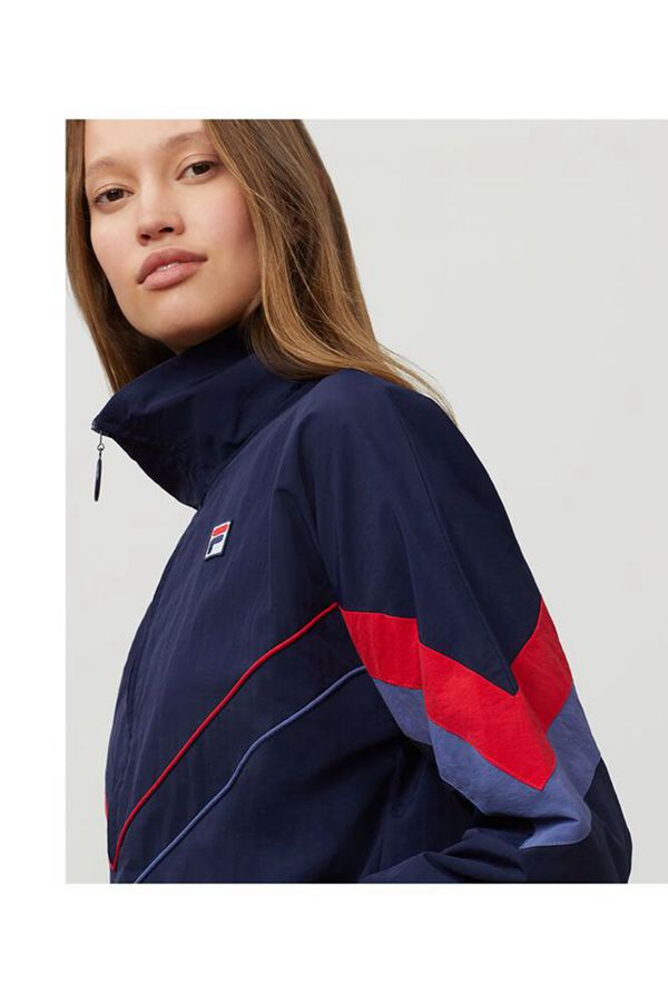This premium windbreaker jacket features a strong throwback look thanks to colorful color combinations and unique chevron striping on the body and arms.