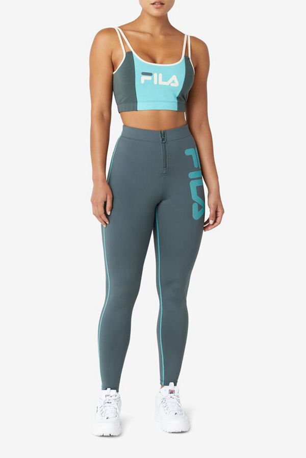 A zippered fly adds a modern element to these 80s inspired logo leggings.