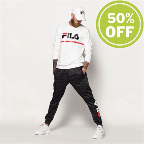 Classic FILA Sweat with crewneck and contrast stripe in red. men