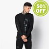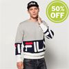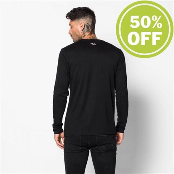 Stylish black sweater with big, shiny FILA logo on the front and on the sleeves. black