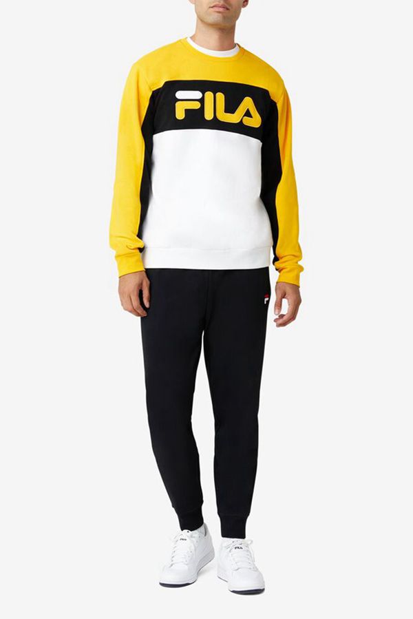 This unique crew neck fleece features a distinct tri-color block with large FILA logo taking center stage on the chest.