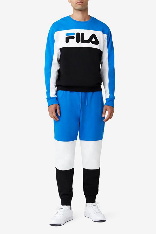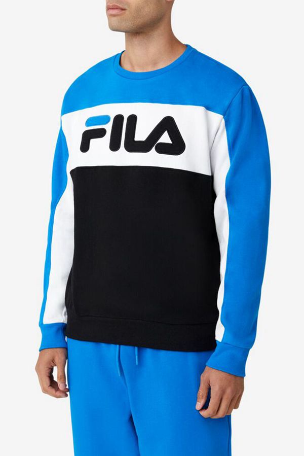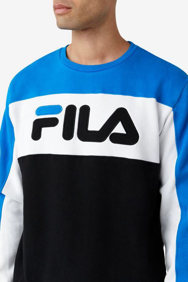 This unique crew neck fleece features a distinct tri-color block with large FILA logo taking center stage on the chest.