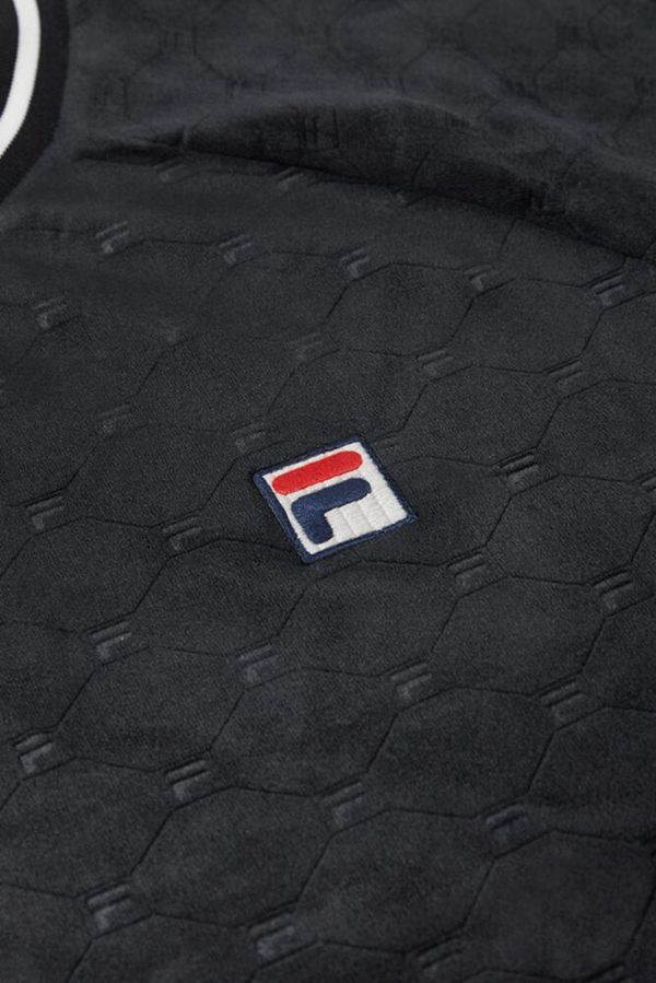 Slip on some sportswear luxury with this velour crew long sleeve, featuring a striped collar and contrasting cuffs.