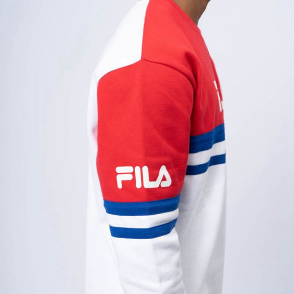 Moletons Fila Homem Azuis/Vermelhas - Fila Powell Fleece Crewneck En Portugal,WVSJ-30269